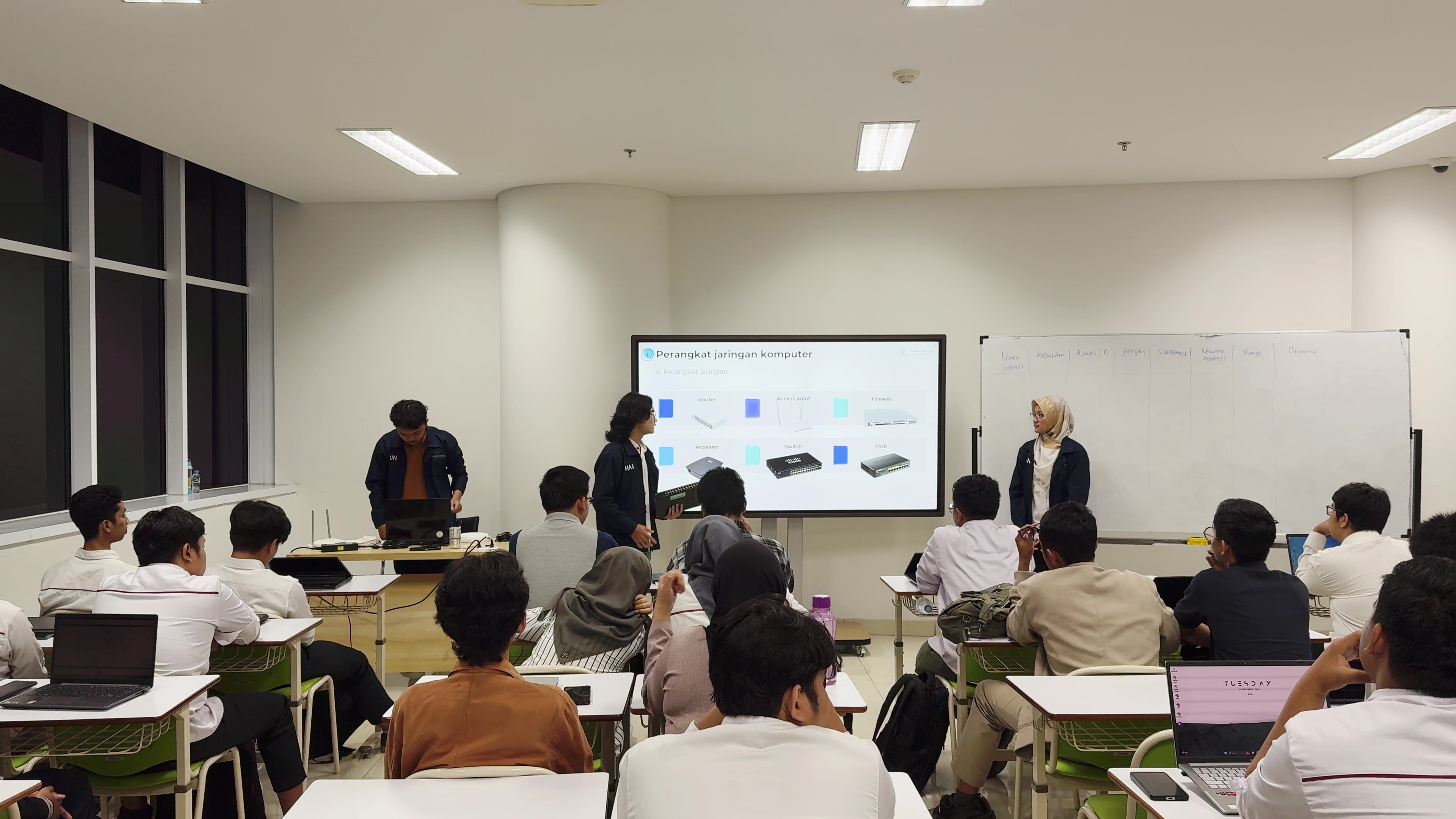 Peserta NetSchool tidak hanya belajar teori, tetapi juga belajar praktek, langsung dibimbing oleh asisten lab yang berkompeten di bidangnya